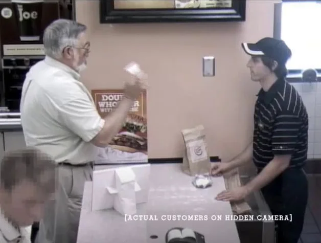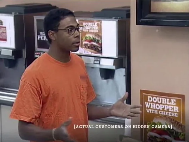 “The premise of the "Whopper Freakout" campaign is as enchanting as it is perverse: Burger King employees claim corporate overlords have stricken the belly buster from the menu one day so Academy Award-nominated director Henry-Alex Rubin (Murderball) can document fast food junkies twitching and spewing when they find they can't have it their way. Day two of the experiment saw competitors' sandwiches replace the Whopper and again, hungry fans got riled up and professed their love, before the King himself appeared to make things right. The results of the big BK joke contributed to an eight-minute webfilm full of brand evangelism, focus group-y responses ("Level of 1-10, how pissed would you say you were...?"), bewilderment and good old fashioned hunger-induced American crankiness. Customers storm back to the counter demanding their beloved Whoppers when they realize they've been served Big Macs or Wendy's burgers, only to have the counter attendants remind them that BK doesn't serve "fried" burgers. Other more wistful BK-goers give folksy Whopper-tinged anecdotes about family bonding and passage into manhood.